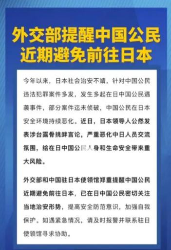 文旅部提醒公民慎重考虑赴日旅游,教育部发出留学安全预警。